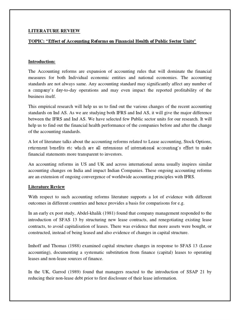 AN literature review examples on finance and accounting literature reviews is a humdrum composition of letter a small volume and free composition, expressing individual impressions and thoughts on A specific occasion operating theatre issue and plain not claiming A definitive or complete interpretation of the subject.